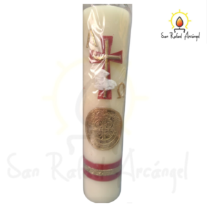 Cirio modelo San Benito , alfa y omega , cordero de Dios.