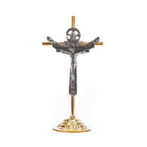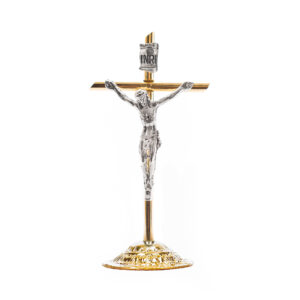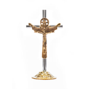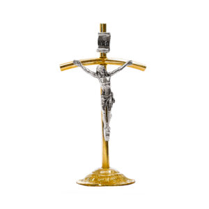 59 Cristo tubular plateado con cruz dorada modelo papal con base «8 cm»