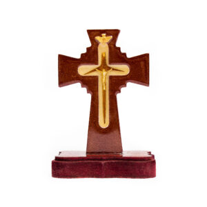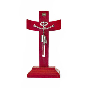 58 Cristo tubular plateado con cruz dorada con base «8 cm»