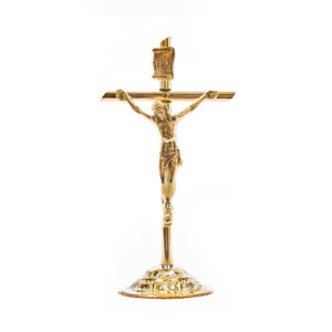 60 Cristo tubular dorado y cruz color dorado con base «8 cm»
