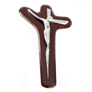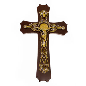 54 Cruz material resina con base y espina, color café claro «13 cm»