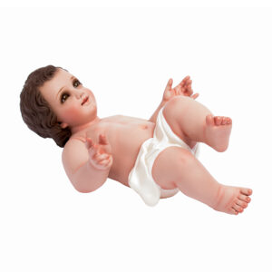 51 Niño Dios, ojos cafés, movible, 27 cm aproximadamente .