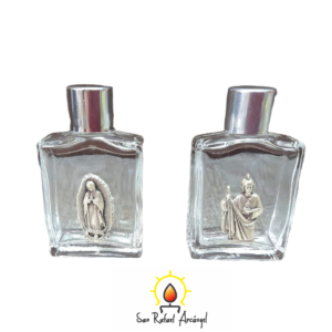 Botella para agua bendita ,Virgen de Guadalupe; modelo redondo .