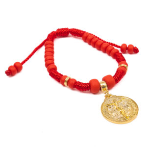 246 Pulsera de San Benito de hilo en color rojo con medalla en chapa de oro