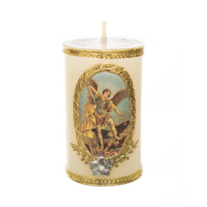 383 Vela decorada San Miguel Arcángel y filo dorado, «5.2 cm x 8.4 cm»