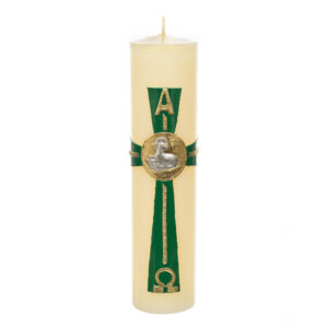 401 Vela decorada cruz color verde, modelo contemporáneo, «19.7 cm»