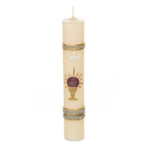 412 Vela decorada primera comunión, custodia y ramillete dorado y blanco, «21 cm»
