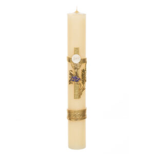 414 Vela decorada, primera comunión, tono dorado con toques color morado, «24 cm»