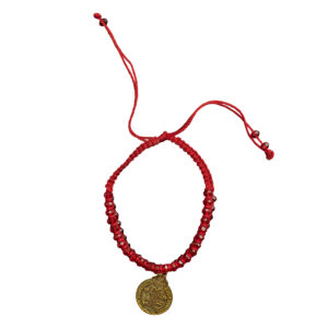 418 Pulsera de hilo con chaquira roja, medalla mediana de san Benito en chapa de oro