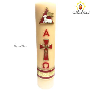 Cirio modelo San Benito , alfa y omega , cordero de Dios.
